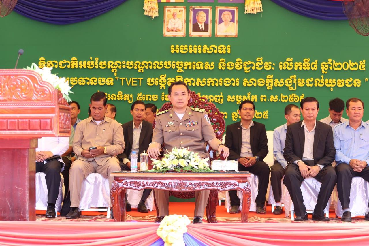 ឯកឧត្តម នួន ផារ័ត្ន អភិបាល នៃគណៈអភិបាលខេត្តកំពង់ធំ បានអញ្ជើញជាអធិបតី ក្នុងវិធីទិវាអប់រំ បណ្ដុះបណ្ដាលបច្ចេកទេស និងវិជ្ជាជីវៈលើកទី៨ ឆ្នាំ២០២៥ ក្រោមប្រធានបទ « ការអប់រំបណ្ដុះបណ្ដាលបច្ចេកទេស និងវិជ្ជាជីវៈបង្កើតឱកាសការងារ សាងក្តីសង្ឃឹមដល់យុវជន »